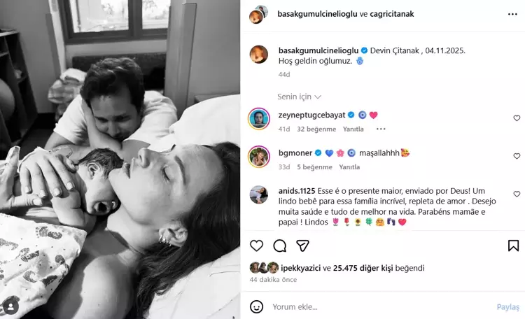 Güzel oyuncu bugün sosyal medya hesabından yaptığı paylaşımda anne olduğunu duyurdu. Dün doğum yapan oyuncu, Instagram hesabından eşi ve oğluyla verdiği pozu yayınlayarak “Devin Çitanak , 04.11.2025. Hoş geldin oğlumuz” notunu yazdı.