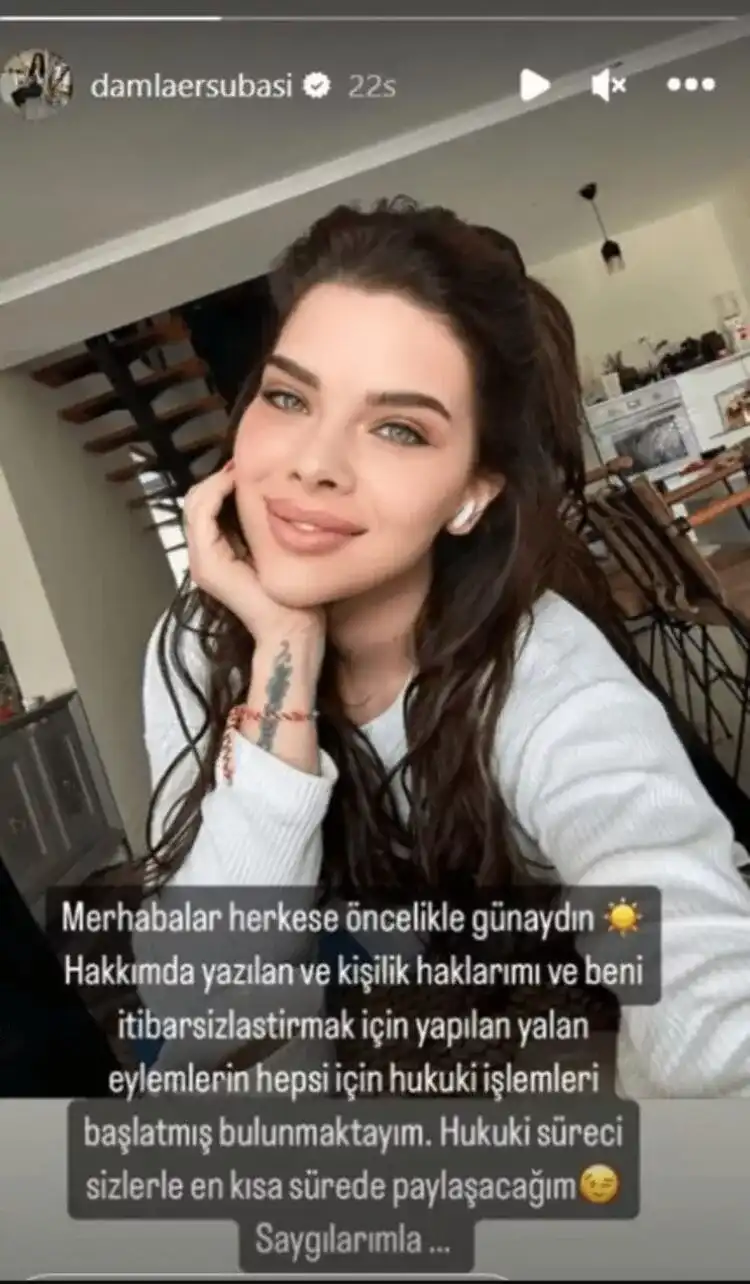 Damla Ersubaşı ise hemen bir paylaşım yaparak dava açacağını söyledi: “Hakkımda yazılan, kişilik haklarımı ve beni itibarsızlaştırmak için yapılan yalan eylemlerin hepsi için hukuki süreç başlatmış bulunmaktayım.”