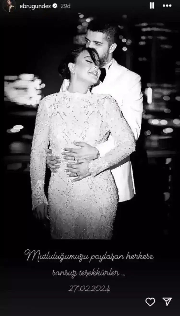 2023 yılının sonlarına doğru iş insanı Murat Özdemir ile yeni bir ilişkiye yelken açan Ebru Gündeş, ilişkisini evlilikle taçlandırdı. 4. kez nikah masasına oturan Ebru Gündeş ve Murat Özdemir çiftinden düğün sonrası ilk paylaşım geldi.