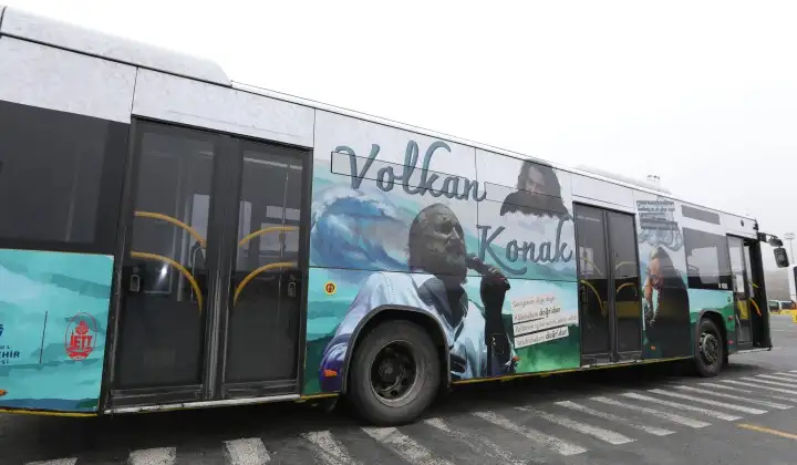 Öte yandan İETT, Volkan Konak’a özel olarak tasarlanan bir otobüsü de hizmete sundu. EL2 Emirgan – 4. Levent Metro hattında 15 gün boyunca sefer yapacak olan özel tasarımlı otobüs, sanatçının kültürel mirasına saygı duruşu niteliği taşıyor.