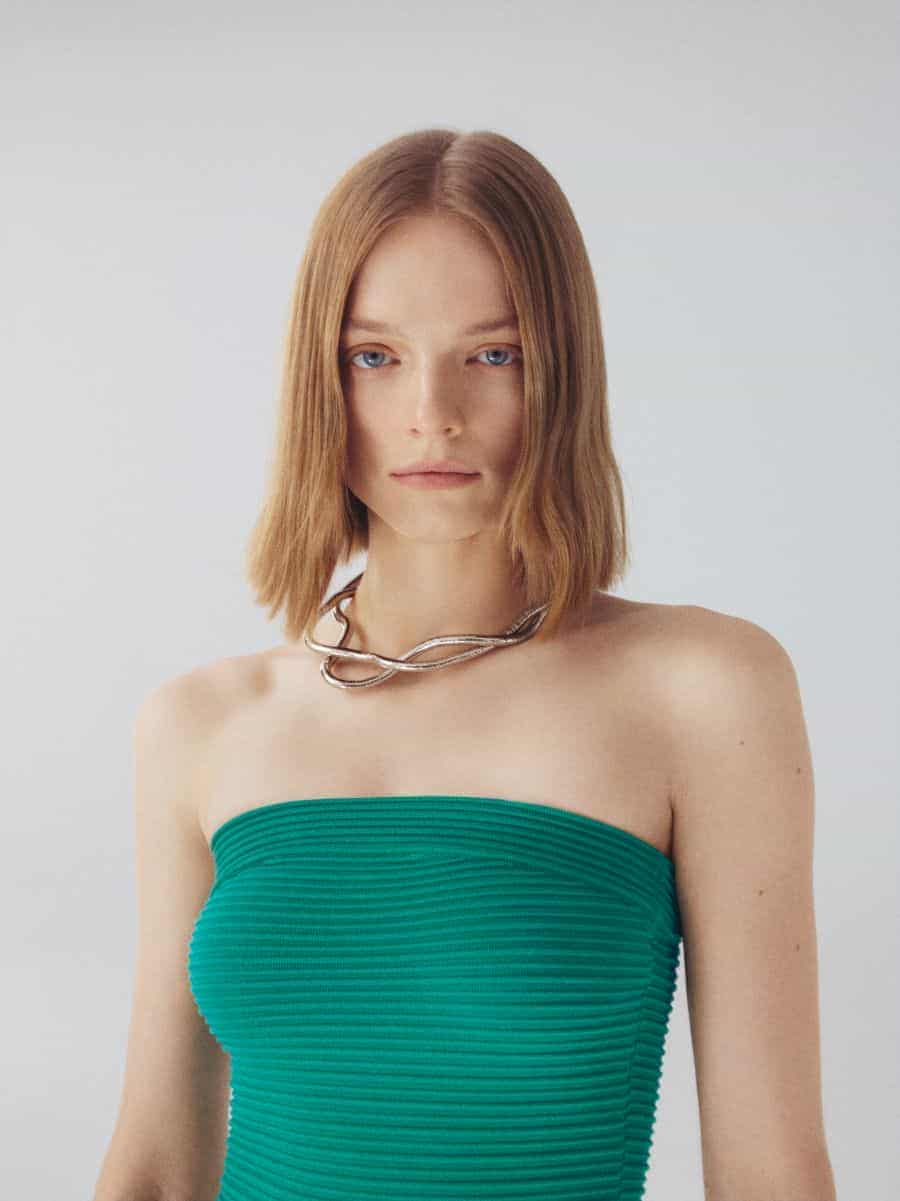 Askılı elbiseler, yağ rengi trikolar, ribanalı beli triko pantolon ve oversize blazerlar feminen görünümü destekliyor. Transparan etkili ve nakış işlemeli görünümüyle oversize trençkot ise sezonun joker parçası olarak sahnedeki yerini alıyor.