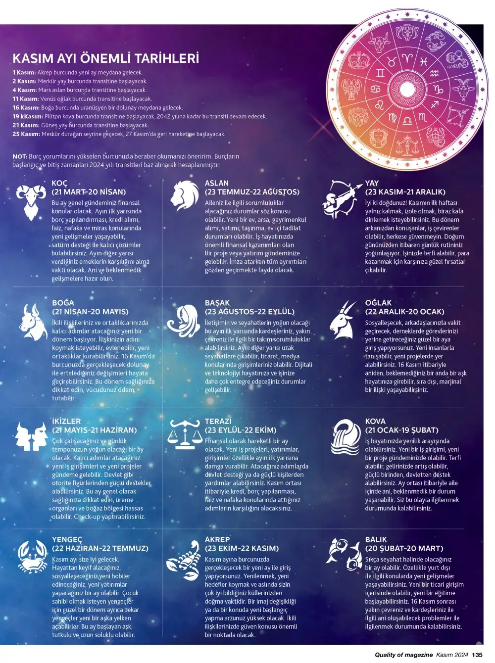 Not: Burç yorumlarını yükselen burcunuzla beraber okumanızı öneririm. Burçların başlangıç ve bitiş zamanları 2024 yılı transitleri baz alınarak hesaplanmıştır.