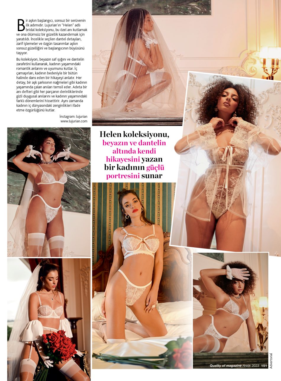 Helen koleksiyonu, beyazın ve dantelin altında kendi hikayesini yazan bir kadının güçlü portresini sunar.