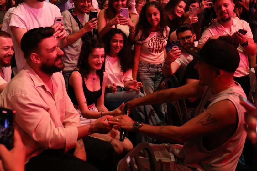 maNga’nın sevenlerine müzik ziyafeti sunduğu sahnesi, mutlu anlara da tanıklık etti. Şarkı arasında bir hayranı, kız arkadaşına evlilik teklifi etti. Kuruçeşme Açıkhava Sahnesi’ni dolduran binlerce kişinin alkışları eşliğinde gerçekleşen teklif, ‘Evet’ yanıtıyla sonlandı. Sahneden inen Ferman Akgül, çiftlere sürpriz yaparak ‘Yad Eller’ şarkısını yanlarında seslendirerek gönülleri fethetti.