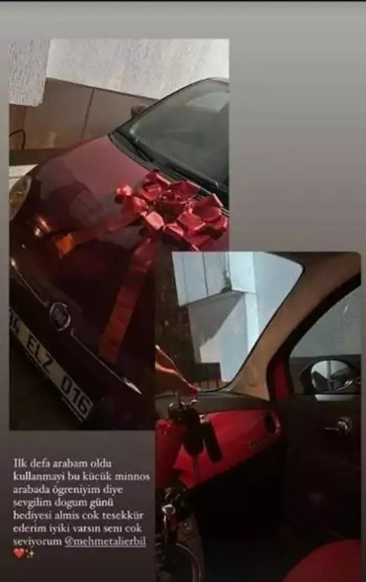 Mehmet Ali Erbil sevgilisine doğum günü hediyesi olarak kırmızı bir araba almış. Ceylan arabasını paylaşarak ‘İlk defa arabam oldu. Araba kullanmayı bu küçük minnoş arabada öğreneyim diye sevgilim doğum günü hediyesi almış. Çok teşekkür ederim iyi ki varsın. Seni çok seviyorum’ notunu düştü.