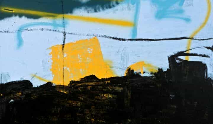 “İMALAT-HANE’nin giriş katında Mert Diner’in üç farklı seriye evrilmiş ve 2016-2022 yılları arasında farklı mekânlarda sergilenmiş işlerini görüyoruz. Girişteki duvarda bizi karşılayan çizimleri, bu üç seriye ek olarak pratiğinin anlayış olarak evrildiği güncel noktayı temsil ediyor. Mekânın içerisinde ilerledikçe, renk paletinin değişimini, üstünü kapatma başarısızlığının kabulünü, örten katmanların saydamlaştığını, altta kalan imgelerin kenarlardan ısrarla sızmaya devam ettiğini görüyoruz.