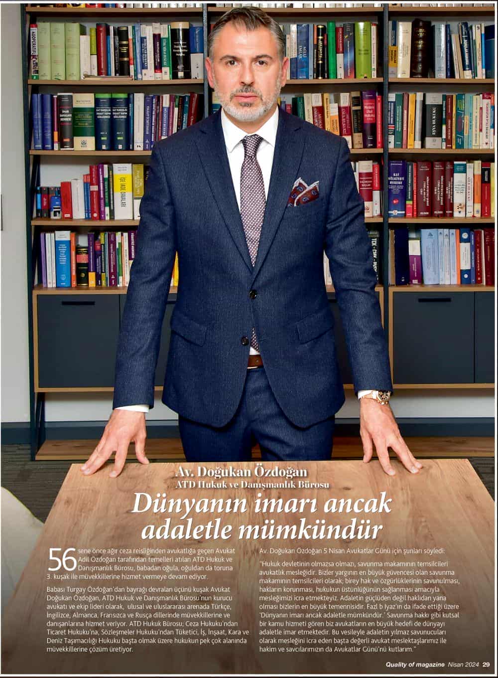 Portre sayfalarımızı ilk konuğu ise ülkemizin önemli avukatlarından, ATD Hukuk ve Danışmanlık Bürosu kurucusu Av. Doğukan Özdoğan.