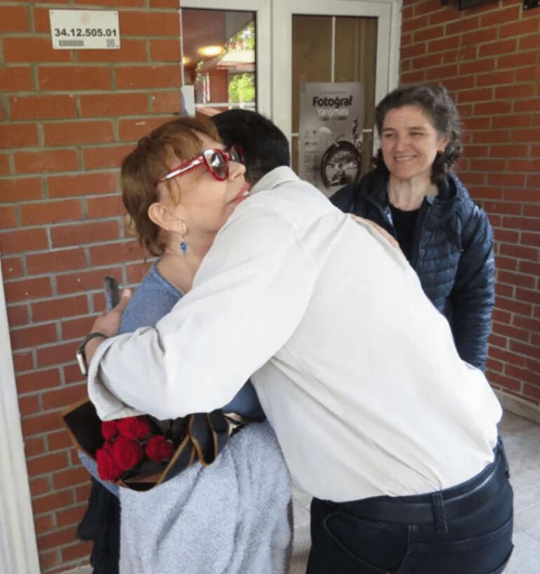 Oy kullanmak için okula gelen bir kişi sanatçıya çiçek vererek Anneler Günü’nü kutladı. Hayranlarına sarılarak öpen 68 yaşındaki Aksu, daha sonra okuldan ayrıldı.