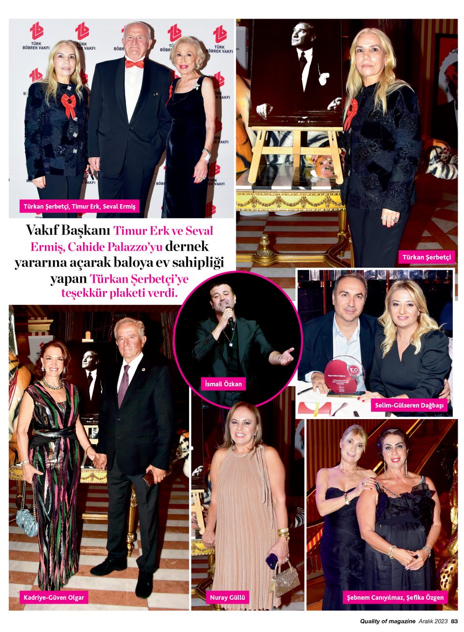 Sunuculuğunu Şahan Varan’ın yaptığı baloda Vakıf Başkanı Timur Erk ve Seval Ermiş, Cahide Palazzo’yu dernek yararına açarak baloya ev sahipliği yapan Türkan Şerbetçi’ye Teşekkür Plaketi verdi.